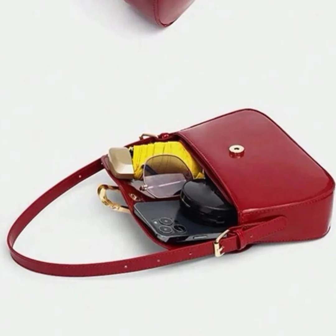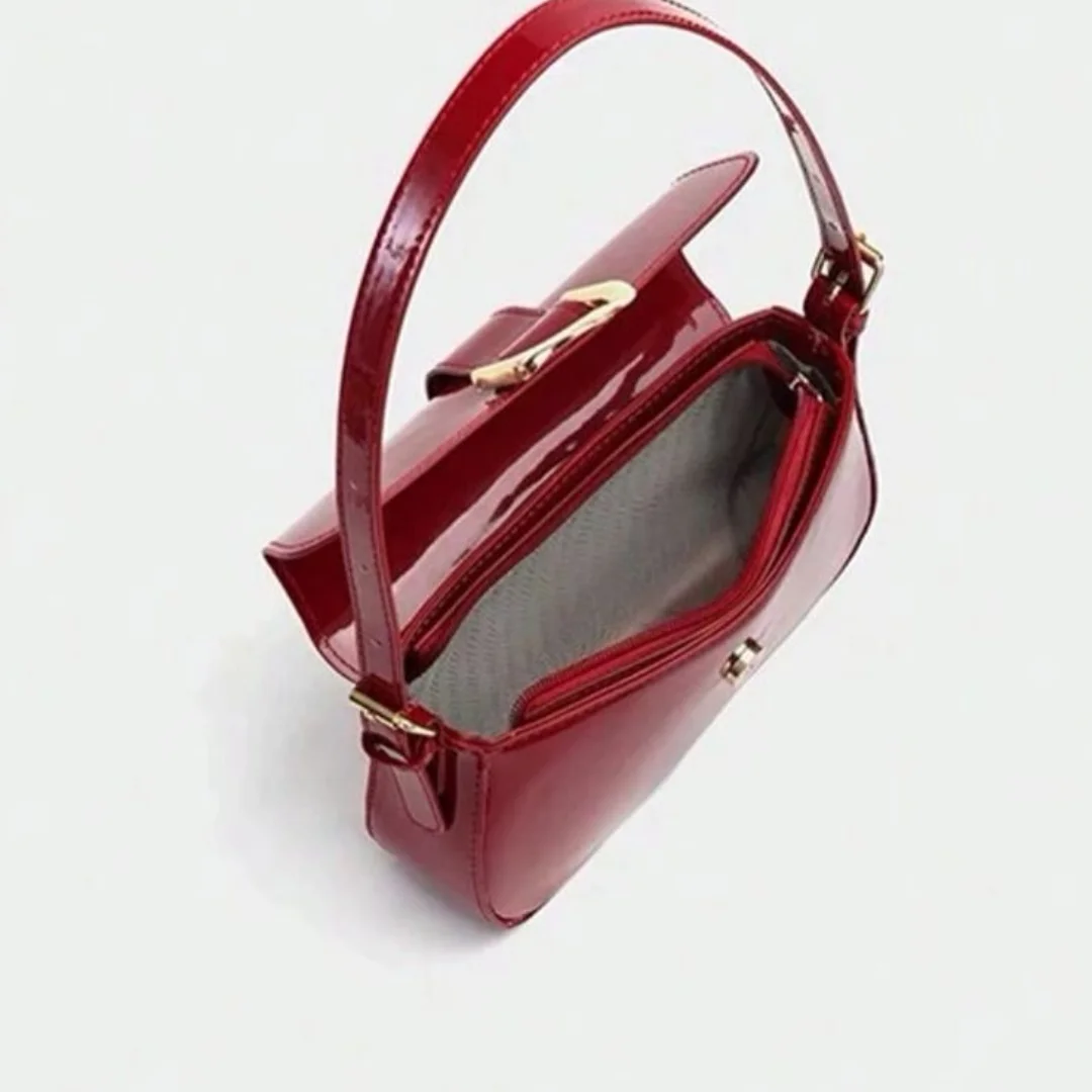 This glossy red luxury handbag is a must-have for those who love to carry a piece of the casual-luxury wherever they go. Material: Leather Colour: Glossy Red
