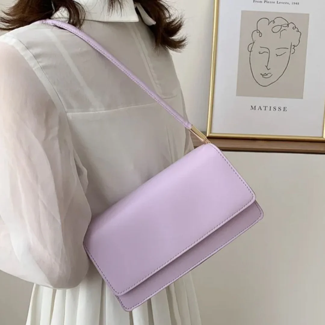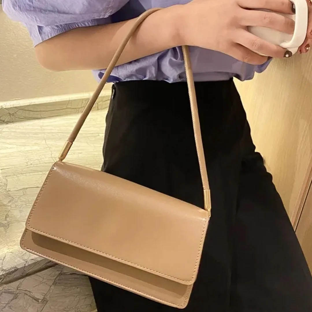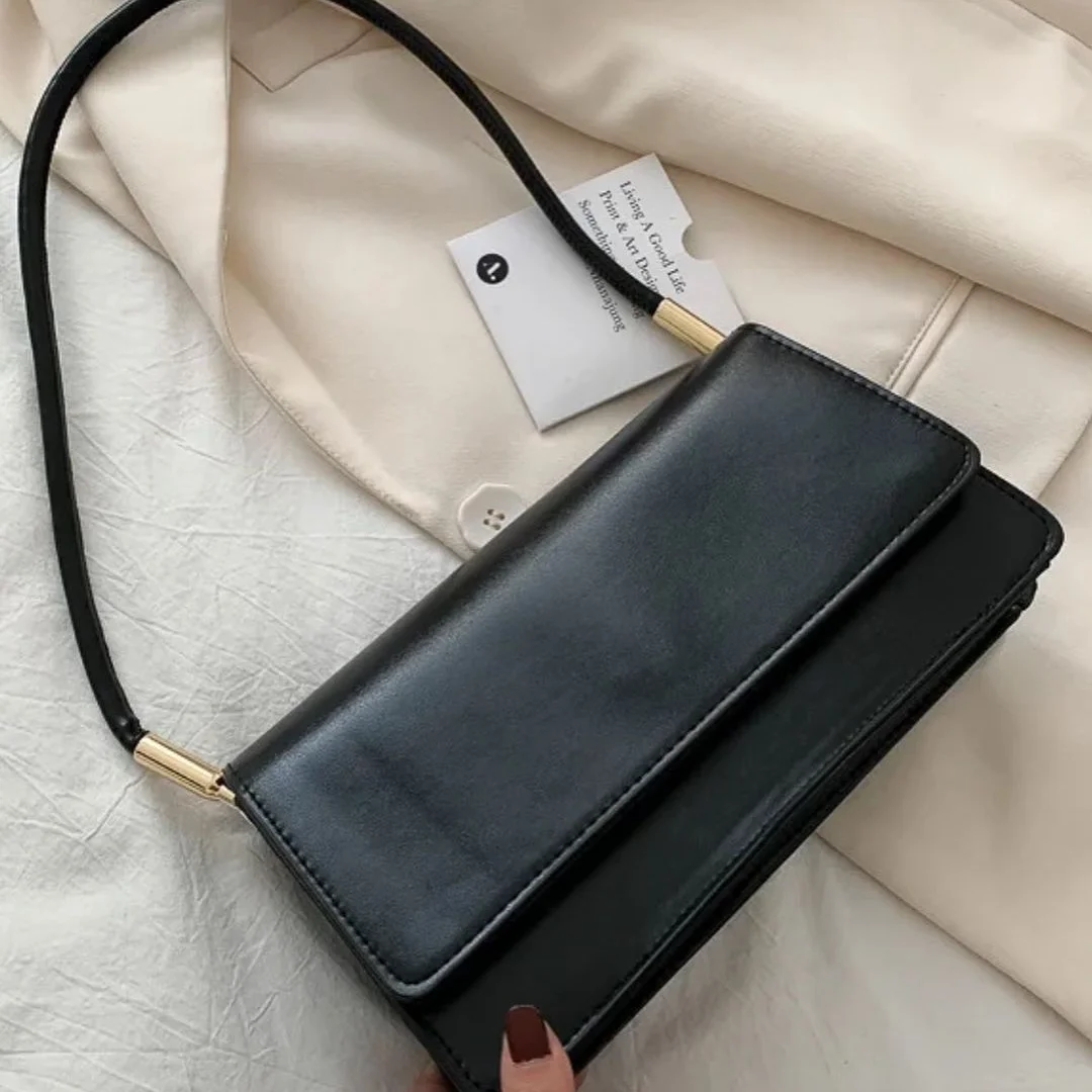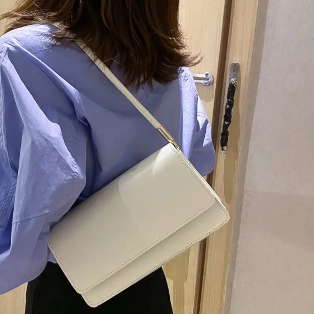 This slim-profile shoulder bag exudes understated elegance. Crafted from PU leather, it boasts a smooth texture. The gold-colored metal accent on the strap adds a touch of sophistication. Whether you’re heading to a business meeting or a casual outing, this bag complements your style effortlessly. The functional design ensures easy access to your essentials.